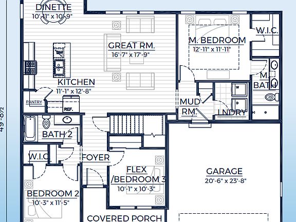 This model is a thoughtfully designed, open-concept, split bedroom ranch. The master bedroom is located in the back of the home and complete with a walk-in closet and a private bathroom featuring a double vanity. An additional bedroom, den and a full bathroom are towards the front of the home. The dinette connects to the open kitchen a great room. The laundry and mudroom combo can be found directly off the garage for added convenience.