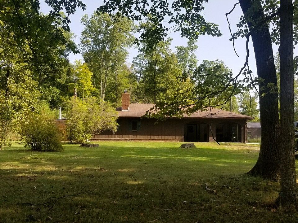 Home has 4 Beds, 1 up, 3 down, 2 full baths. 2 Wood burning stoves that are capable of heating the entire home. EBB & ECC heat, sauna. Kitchen cabinets were made from wood from trees on the property, home has whole house generator with 2 tanks owned by the seller. 2 pole barns. Property being sold AS IS. ESTATE. Beautiful mature trees.