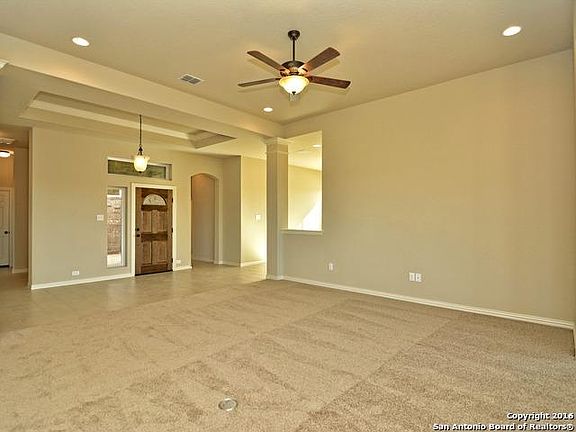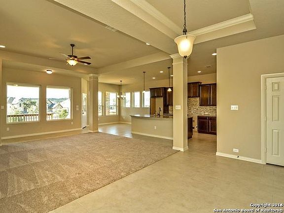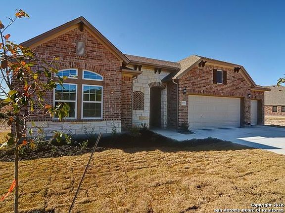This 1 story brick and stone home in the tranquil community of Triana features an inviting courtyard entry. The open plan with high ceilings and dramatic windows is a show stopper. The family chef will enjoy the gourmet kitchen with oversized granite island. This home even has dual masters! The oversized laundry plus hobby space is an added bonus. The open study could also serve as a formal dining. Enjoy quiet evenings on the covered porch overlooking the green belt. Ample storage in the 3 car garage.