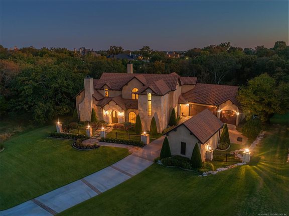 RICH, SANTA BARBARA STYLE HOME, SURROUNDED BY LUSH FORESTRY ON NEARLY ONE ACRE IN A GATED JENKS NEIGHBORHOOD! Conveniently located and highly amenitized, this beautiful estate has it all - Walls of Windows overlooking the grounds, Executive Office, Wine Grotto, Bunk Room, Wrapping Station, Gourmet Kitchen, Safe Room, and an amazing Outdoor Entertaining Oasis. 4 Car Garage and whole-home Control4 System. Brian D. Wiggs Homes custom build!