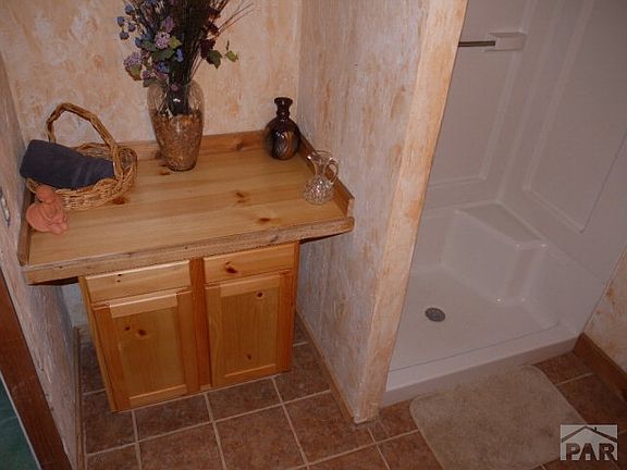 Mountain Tranquility at its finest! Beautiful log home in Rye. The forrest setting lends a quiet backdrop for this styling 2 bed 2 bath including all wood and slate flooring, wrap around covered deck, in floor heat, 2 car detached garage with workshop area, gorgeous open loft and walk out basement. Wood stove centered in living space on main floor, propane stove in basement ready to add bedrooms and family room to the finished full bath. Hot tub included as well. The kind of property you read about in novels. 3rd bedroom is non-conforming loft.