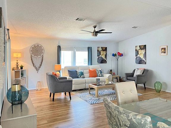 55+/1998/LOTRENT$770/1350SQFT/2BED2BATH/RECENTLYUPDATED Step inside and feel right at home in this spacious and inviting 2-bedroom, 2-bathroom gem in the heart of the wonderful Weeki Wachee North 55+ community! If you've been looking for a place that feels open and bright from the moment you walk up the handicap friendly ramp, this is it. The first thing you'll notice is the beautiful wood-look flooring that flows through the main living areas, making the whole space feel connected and modern. The all glass enclosed Florida room has the ideal horizontal windows. The living room is huge, with plenty of room for all your comfy furniture, and features a lovely electric fireplace that adds a nice touch of coziness on cooler evenings. It's the perfect spot to relax with a good book or have friends over. The kitchen is the heart of the home, with warm oak cabinets and crisp white appliances, including a fantastic side-by-side fridge with water and ice right in the door. There's tons of counter space for when you're cooking up a storm, and it opens right up to the dining area, so you never have to miss out on the conversation. When it's time to unwind, the master bedroom is your private retreat. It's got plenty of space, a ceiling fan to keep you cool, and a walk-in closet that's surprisingly large - finally, enough room for all your shoes and then some! The second bedroom is perfect for guests or could easily be a home office or craft room. And let's talk about the community! Weeki Wachee North is a top-rated park for a reason. It's not just a place to live, it's a lifestyle. There's always something going on, whether it's a game of shuffleboard, a dip in the pool, or a get-together at the clubhouse. It's an active and friendly place where neighbors quickly become friends. Plus, it's conveniently located right on the Adventure Coast, so you're just minutes from kayaking, fishing, and all the outdoor fun you could want. This isn't just a house; it's your next chapter. Come and see for yourself why this could be the perfect place to call home