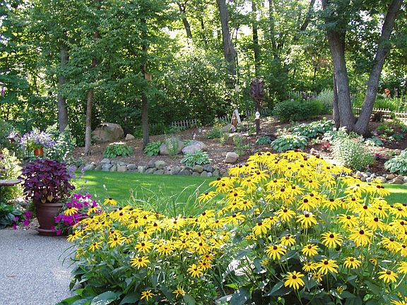 Well maintained custom designed home. Full of amenities like: granite and Cambria counters, custom built-in birch shelves and cabinets in living room, Jacuzzi whirlpool tub, oversized master bath, large family room in lower level, DSL wired home office upstairs and well established garden.