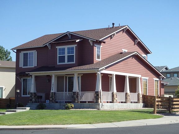 Amazing front porch unobstructed Mountain views! Large bedrooms with ample storage in each bedroom. Master bed is a large suite with a double vanity and soaking tub in 5 piece master bath and a generous walk in closet. Eating area in kitchen, loads of cupboards and a pantry. Laundry including washer and dryer is just off the kitchen and formal dining and living rooms. Gas fireplace in the family room, surround sound, windows galore and room for your large TV and furniture. Unfinished basement for your extra storage needs. Low maintenance back yard with private patio and BBQ grill attached. Real wood blinds through out the home, wood trim. Granite counters in the kitchen. Play ground and community pool. Easy access to E 470 and DIA.