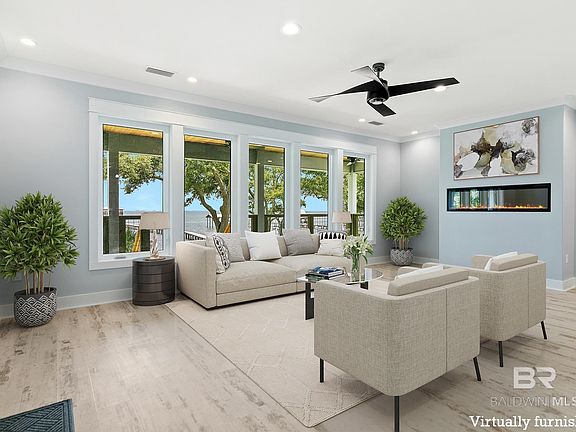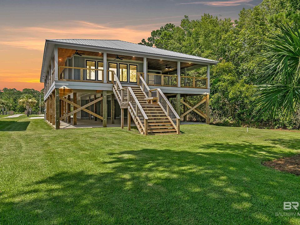If you've been dreaming of the perfect Mobile Bay lifestyle, this extraordinary, one-of-a-kind home is your dream come true. Picture yourself enjoying breathtaking sunsets over the bay from expansive windows or the massive wrap-around porch, as pelicans glide by and dolphins frolic just off your front yard. Whether you're hosting shrimp and crawfish boils on the spacious covered porch or relaxing with loved ones, the views and setting are nothing short of magical. With plenty of storage and workshop space, plus a built-in lift for effortless transport, this home is as practical as it is stunning. Set on a sprawling .72-acre lot with 70’ of bay frontage, this property is surrounded by serene, natural beauty. Inside, the smart open floor plan is perfect for both intimate living and entertaining, featuring two ensuite bedrooms for guest privacy and a great room with a cozy fireplace, dining area, and gourmet kitchen. Banks of windows flood the space with light, offering tranquil bay views and seamless indoor-outdoor living.Equipped with a natural gas whole-house generator, spacious rooms, large closets, and built to Gold Fortified standards for maximum insurance savings, this newly constructed home offers the perfect blend of elegance, comfort, and functionality. Don’t miss this rare opportunity to own a slice of paradise. Schedule your tour today! Buyer to verify all information during due diligence.