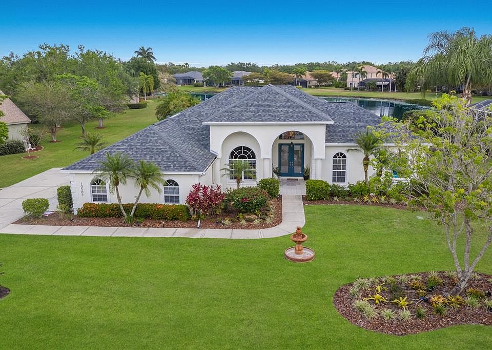 NEW PRICE !!! NEW ROOF 2023 !! Welcome Home to River Club! Set on a Lovely Tranquil Lake, this Executive 4 Bedrooms, 3 Bathrooms PLUS Office and Bonus room POOL home sits on a serene .47-acre lot in this highly desired neighborhood! It is literally minutes to Lakewood Ranch Main Street, Great Schools, Lakewood Ranch Hospital, Sarasota, and Florida’s world-famous beaches of Siesta Key, Lido Key and Anna Maria Island. Upon entering the home, you are greeted by a fabulous view of the lake in the formal living room that flows into a cozy wood-burning fireplace family room, with disappearing sliding doors and a bonus room with gorgeous views of the lake, lush landscape, and the large pool/spa area. There is a nicely appointed kitchen, with newer appliances. Three of the four bedrooms are on one side of the house: affording privacy to the master suite. Sellers have taken excellent care of the home and also have planted Papaya, Orange, Lychee, Avocado and Mango trees ready for your enjoyment! River Club is a deed-restricted golfing community with NO CDDs, low HOA, optional golf club membership, great schools, and easy access to attractions, including our award-winning beaches. This home, with an OVERSIZED 3 CAR GARAGE with an electrical vehicle charging station and has been lovingly upgraded. Featuring New A/C in 2020, water heater in 2017 and most appliances replaced in 2020. All that is missing is you and your family.