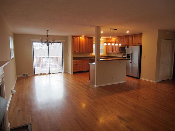 This home features an open concept living room, dining room, and kitchen. All kitchen appliances are provided. The four bedrooms are on the main level along with two full baths. The walk out basement features a large finished room, a full bath, and the utility room. All hardwood on top floor, tile in the lower level. Oversized 2 car garage. Application fee $30