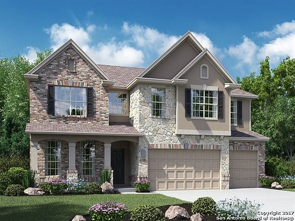 Two Master Suites! 1 up & 1 down, plus 2 other bedrms, 3 full baths, study, huge game rm, dining, huge family rm w/stone fireplace, oversized covered patio overlooking greenbelt & 3-car garage. Gourmet kitchen with granite counter tops, gas cooking, SS appliances including double ovens, Butler's pantry and more. Extensive wood and tile flooring. Includes sprinkler and alarm systems. Ready in February.