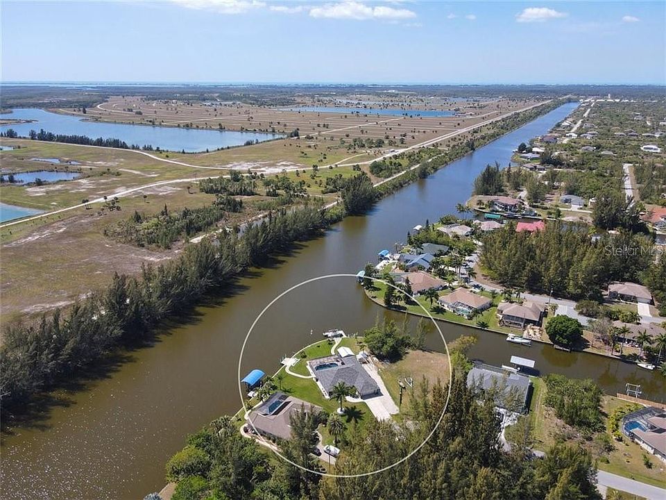 We know that it is all about LOCATION, LOCATION but this extraordinary property is over the moon with 169' of SAILBOAT WATERFRONT on a gorgeous tip lot at intersecting canals. And the most wonderful part is that the view across this wide expanse of water will not change - a NATURAL SETTING that will not be developed - making this a rare location. More about this exceptional waterfront living, but first let's tour the house! A screened entry welcomes you, and you will love the breeze coming in on those beautiful Florida days. It is impossible to not be overwhelmed with the view through a wall of pocket sliders in the great room that brings in every lovely detail. The great room flows into a remarkable kitchen, recently updated with new bullnose granite and backsplash in 2021, new refrigerator 2020. An adjoining dinette has another spectacular window view of all the natural beauty beyond. In addition, there is a separate formal dining area to enhance your entertaining and living space. With plant shelves and many other designer touches you will definitely indulge your decorator style! The master bedroom is large and pleasant with plenty of closet space and a corner tub in the ensuite. Guest bedrooms in this split plan are perfect for the comfort of family and friends. The garage is extra deep, a perfect solution for parking your truck or other long vehicle. On the practical side there is a new roof in 2019, new ceiling fans throughout, new hot water heater 2019, irrigation pump and switch 2019 (sprinklers water from the canal), exterior shed with carport area 2020. Now let's talk about your Florida lifestyle in this exceptional home - as you would expect it is beyond your wildest dreams with extraordinary lanai and patio space. The sparkling heated freshwater pool will be your delight on summer days, and with a large covered area for dining and plenty of room for sunning your day will be complete. There is an adjoining covered sitting area with a large built in bar with refrigerator and sink, and roll down shades for your comfort. Spectacular entertaining, right? A large open patio completes the fabulous lanai/pool area. Paved walkways on either side of the lanai lead to the water. The wrap-around dock with water and electric was resurfaced in 2019, and there is a huge fish cleaning station as well as TWO BOATLIFTS- a 6000 lb boat lift as well as a 500lb lift for your recreational watercraft. As we mentioned, this is sailboat water, so pack up your cooler and set out to the Harbor, the Gulf and points beyond. One more thing, the homeowners have created a small "beach" sitting area down by the water! We think you will agree that this property is exceptional. Please scroll through the photos and watch the video, and we invite you to schedule your showing as soon as possible.