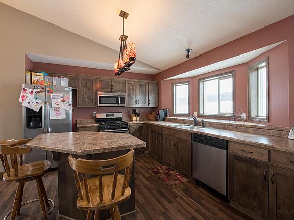 5 bedroom 3 bath walkout home located on 4+ wooded acres. 3 bedrooms on same level, Master bath. Center island kitchen with stainless steel appliances. Completed 3rd level with 2 large bedrooms, bath and large family room, wet bar area and surround sound speakers. Come see this home today!