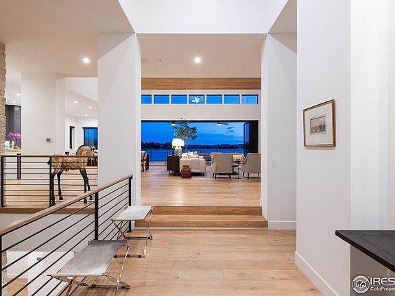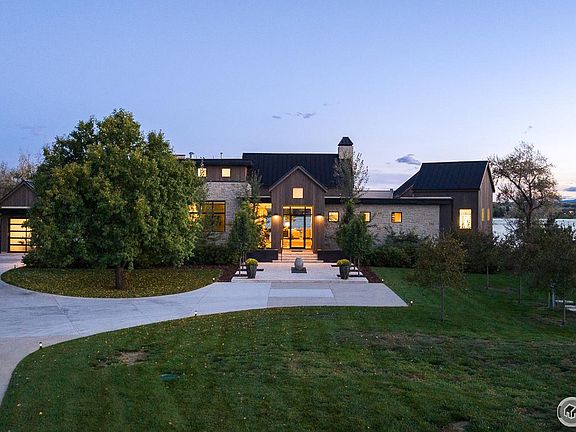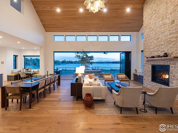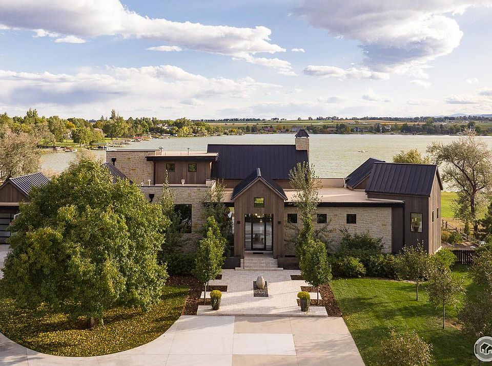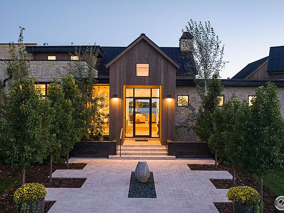Stunning modern farmhouse nestled on 1.5+ acre lakefront property overlooks breathtaking panoramic lake and mountain views. Rare and exclusive access to motorized recreation on Gaynor Lake and a convenient, private dock combine to provide an unrivaled boating lifestyle. White oak wood floors and soaring cathedral ceilings open to a spacious living room with a stone wrapped fireplace and vast accordion glass doors that effortlessly flow to an expansive deck with jaw dropping views. A gourmet kitchen boasts a high end appliance package, butler's pantry and breakfast nook. The luxurious primary suite includes a cozy fireplace and offers utmost privacy and relaxation amid a serene lake backdrop. A custom double sided steel fireplace flows from the suite to a chic, glassed office space Unwind in a lavish five piece bath with a 72" hydro massage tub and oversized steam shower with floating bench. Walk in closet conveniently leads to main level laundry. Upstairs, a non conforming bedroom or additional office space leads to a private upper deck overlooking sweeping views. An open tread staircase framed by a soaring stone accent wall leads downstairs. The lower level suite offers ideal separate living or entertaining space with walkout access, a rec room, wet bar, exercise space, separate laundry hookups, 2 bedrooms & 3 baths.