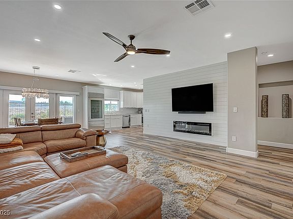 DON'T MISS THIS RARE OPPORTUNITY TO PURCHASE A SUMMERLIN HOME WITH CANYON AND MOUNTAIN VIEWS, ACCESS TO TRAILS AND PARKS IN COTTONWOOD CANYON. MINUTES AWAY FROM DOWNTOWN SUMMERLIN RESTAURANTS AND SHOPPING, COSTCO, GROCERY STORES, AND RED ROCK CANYON. THIS ONE STORY HOME IS LOCATED IN THE GATED COMMUNITY OF DESERT BLOOM AND WAS RENOVATED IN 2022. KITCHEN WAS REDONE WITH NEW CABINETS, MARBLE COUNTERS, AND STAINLESS STEEL APPLIANCES INCLUDES SUBZERO REFRIGERATOR. BATHROOMS HAVE BEEN REMODELED AND HAVE TOTO BIDETS W/WARMING SEATS. GARAGE DOOR HAS BEEN REPLACED AND NEW OPENER INSTALLED. HOT WATER HEATER HAS BEEN REPLACED. ADDED NEW SOFT WATER SYSTEM AND REVERSE OSMOSIS WATER SYSTEM. SOLAR PANELS ADDED IN JUNE 2024, NOT LEASED PAID CASH. YARD RENOVATED WITH LUSH DESERT LANDSCAPING FOR A PRIVATE OASIS FEEL ALONG WITH YOUR OWN LIGHTED CORNHOLE COURT. BACK PATIO HAS BEEN TILED AND IS COMPLETED WITH A ALUMINUM TRELLIS COVERING. FRONT LOADING SAMSUNG WASH/DRYER. MANY MORE UPGRADES TO SEE.