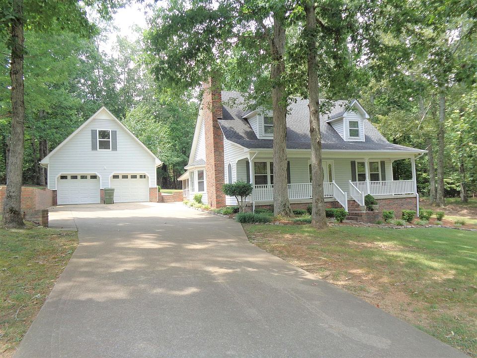 Great Location! Close to town, poplar school, offers move-in ready, hardwood/tile flooring, crown molding, granite, mst. bedroom down, gas fireplace, finished bonus room above garage with deck, covered front porch, screened patio, 2 car det. garage, concrete drive, backs up to wooded area, plus 242 sq. ft finished above garage not included in total