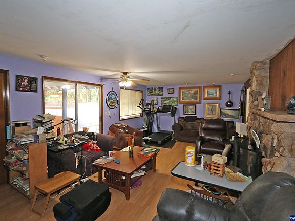 Surrounded by a beautiful wooded setting. This one level home features 5 bedrooms and 2 baths. Kitchen with huge DR and 2 pantries. Living room with Rock fireplace. Home is on Advantex Septic System. 30x60 shop/out building has 3 more bathrooms as well as partitioned walls, power, heat, metal roof, and separate standard septic, structural posts appear to run on center. Some divided rooms are pre framed areas, perfect get away for kids or adults!Portion of acreage across Annie Ln see acc Docs for Plat Map