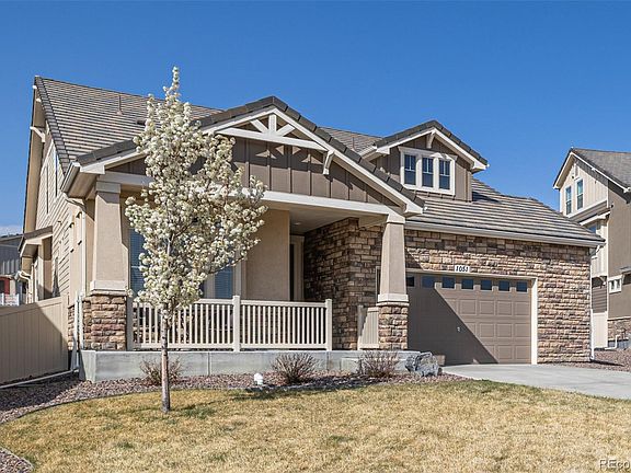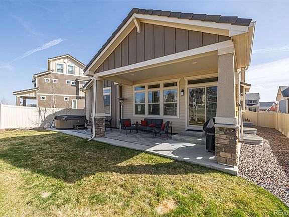 Main Floor Primary Suite in Sought-After Erie Highlands! Welcome to this stunning ranch-style home with a bonus upper level, perfectly situated on a cul-de-sac lot backing to greenbelt! A charming front porch sets the tone for the warmth and comfort you’ll find inside. Step into the main level, where engineered hardwood floors guide you through an open and inviting layout. At the front of the home, a versatile bedroom or office provides a quiet retreat, adjacent to a full hall bathroom with stylish tile flooring and designer finishes.The heart of the home is the chef-inspired kitchen, featuring sleek leather granite countertops, stainless steel appliances w/ gas range, a walk-in pantry and a generous center island. The spacious dining area flows seamlessly from the kitchen to the great room. The bright and airy great room is anchored by a cozy gas fireplace and opens directly to a covered back patio—perfect for indoor-outdoor living. The main floor primary suite is a luxurious haven, complete with a spacious bedroom, a private sitting area and spa-like en suite bathroom. Enjoy a large tiled shower, dual vanities, a linen closet, and an expansive walk-in closet. Also on the main level, a convenient laundry room and thoughtful design details throughout. Upstairs the flexible living space awaits. A large bedroom with a walk-in closet offers more of those stunning mountain views, while a spacious loft provides endless possibilities—home office, game room, or lounge. A full bathroom and additional linen closet complete this smart space! The finished basement is just as impressive, featuring a large family room, spacious bedroom with custom walk-in closet, a full bath, and a huge storage room offer functionality and comfort for all. Outside, the beautifully landscaped backyard is perfect for relaxation and entertaining. Enjoy the spacious covered patio with views, plus an additional open patio area. Hurry and see this home before it's gone!