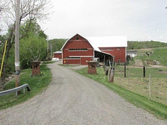 160 ACRE COUNTRY PROPERTY AND ONE OF THE AREAS NICEST FARMS! 2 BARNS & LRG WORKSHOP, TWELVE PASTURES W/ HIGH TESILE ELECTRIC FENCE, CREEK,FOUR STOCKED PONDS, A BEAUTIFUL RANCH HOME & LRG AREA OF WOODS WITH SOME OF THE LARGEST BIG BUCK IN NEW YORK!