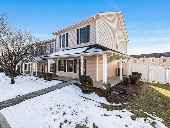 Established neighborhood with no new construction happening, super close to town and transit, really well maintained and it's even an end-unit?! Make this Harrisonburg city townhome yours quick! It has a covered porch on an end lot for extra yard space, fenced in the back and comes with an outdoor storage shed for your outdoor entertaining things. On the inside you'll find a sizeable living-room with a half bath attached on the main level, a few storage closets, and the open concept kitchen and dining room. Matching all-black appliances to compliment the accent on the stained cabinets, and the fridge is brand new. Upstairs there's laundry (on the same level your bedrooms!) in the hall, a full bathroom with tub in the hallway, another closet, two smaller rooms with oversized closets, the primary suite with a vaulted ceiling, walk in closet, & private full bathroom also with a tub. Community management takes care of mowing your grass including the fenced in part and you get 2 dedicated parking spaces just for you, with the perk of a close guest space since you're on the end! The surrounding communities are a good mix of owners & renters. You're close to everything yet tucked away off the main road. Mountain views out back too!