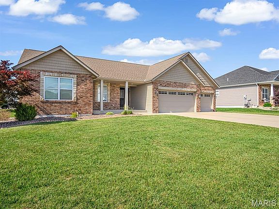 Located in the desirable Creekside Estates subdivision, this one-owner home built by Vogt Builders in 2017 offers quality construction, an ideal location, and an incredible price. This custom one-story ranch features an open floor plan with three spacious bedrooms and two full bathrooms. The heart of the home is the beautifully designed kitchen, complete with a center island, quartz countertops, stainless steel appliances, and a serene lake view. The kitchen flows seamlessly into the main living areas, making it ideal for everyday living and entertaining. You'll also find main-level laundry for added convenience and a three-car garage for ample storage. Step into the attached sunroom and enjoy peaceful mornings or relaxing evenings overlooking the water. The full unfinished basement includes an egress window and a rough-in for a future bathroom, offering endless potential for additional living space. As an added bonus, this home can be sold almost fully furnished, making your move-in process even easier.