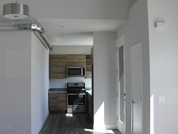 It is available for rent from 01/09/2021 till 03/31/2021. A one bedroom, one bathroom townhouse with upscale finishes. The spacious living room has plenty of natural light with its 18' ceiling and large windows. Exposed ducts, a lofted bedroom contained by a staircase. Private one car garage. It is a 4 minute walk to the light rail station.