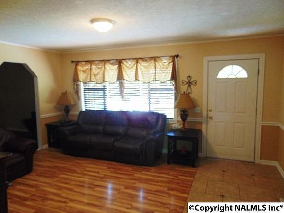 Lovely 3 Bed 1.5 Bath on 2 acres just 20 minutes from south Huntsville & Redstone. Large Family Room with Laminated Wood Floors, Crown Molding & Chair Rail. Eat-in Kitchen with new counter tops & tiled back splash. 11 X 15 Bonus room w/ Tile Floor & Ceiling Fan currently used as work out area. All bedrooms have Laminated Wood floors. Custom plantation blinds throughout home. Large deck in back w/ chain link fenced back yard with Fire Pit. Hot Tub to remain. Roof new in 2008, Water Heater new in 2013. Great Starter Home.
