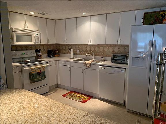 Beautifully appointed, PET FRIENDLY, FIRST FLOOR condo in Bimini Bay Club. These condos don't come on the market often, especially a gem like this one! This home features 2 bedrooms with a split bedroom floorplan, and 2 baths. The living area and kitchen are all open and separated by a breakfast bar with a granite counter top. The master bedroom has a large closet, sliding doors to the screened porch area, and an ensuite bath with a walkin shower. Both the master bath and the guest bath have been updated with newer vanities. The master bath has been re-tiled and the light switch and fan have been put on a split switch. The community has an inground, fenced pool located right next to the "M" building. The grounds are very natural, with lots of oak trees and small animals. This is a great place to call you winter home, and its ready NOW! Don't delay - prices will only continue to rise as our winter selling season heats up!