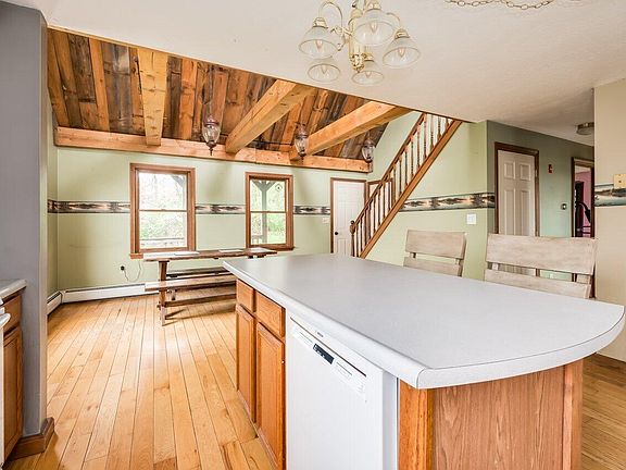 Tucked away on nearly 5 acres in Alfred, this charming three-bedroom, two-bathroom home offers a warm blend of rustic charm and everyday comfort. Step inside to discover a bright and inviting kitchen with a center island, ideal for gathering with family or entertaining friends, that flows seamlessly into the spacious living room. Here, vaulted ceilings with exposed wood beams add warmth and charm, while large windows invite in natural light and frame the views of the surrounding woods. Two comfortable bedrooms and a full bath complete the first level, providing space for guests or a home office. Upstairs, an open loft area offers cozy flexibility—perfect for a reading nook, workspace, or playroom—leading to a private bedroom with its own full bathroom, creating a serene retreat at the end of the day. Outside, the property's 4.87 acres provide plenty of room to roam, garden, or simply relax in the quiet. A large three story detached garage with 3600 sq. ft.  offers space for 4+ vehicles, a workshop, or storage for all your outdoor gear. Whether you're sipping coffee on the porch, watching the leaves change in the fall, or enjoying the stillness of a snowy winter morning, life here is all about slowing down and soaking in the beauty of nature.