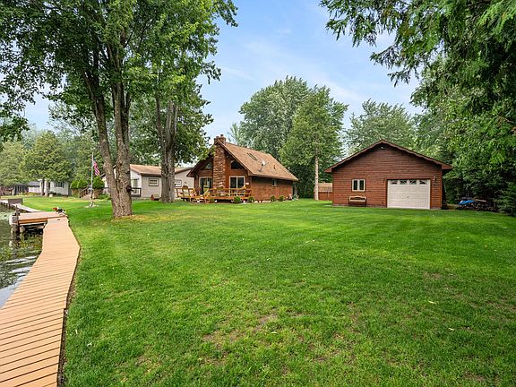 The centerpiece of this serene sanctuary is a beautifully maintained chalet-style house, exuding warmth and comfort. Inside, you'll find a spacious layout designed for relaxation and entertainment. The large, detached garage provides ample storage space and serves as a convenient workshop for hobbyists or outdoor enthusiasts.
