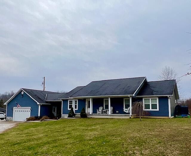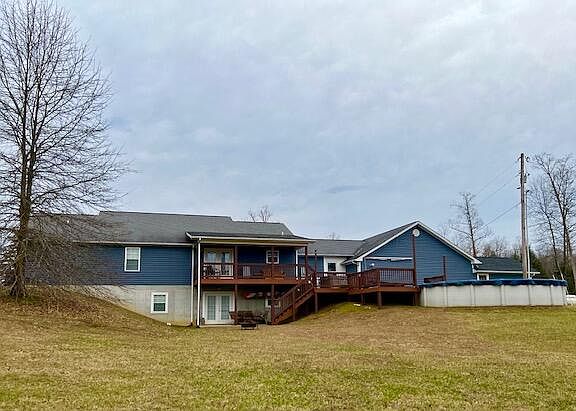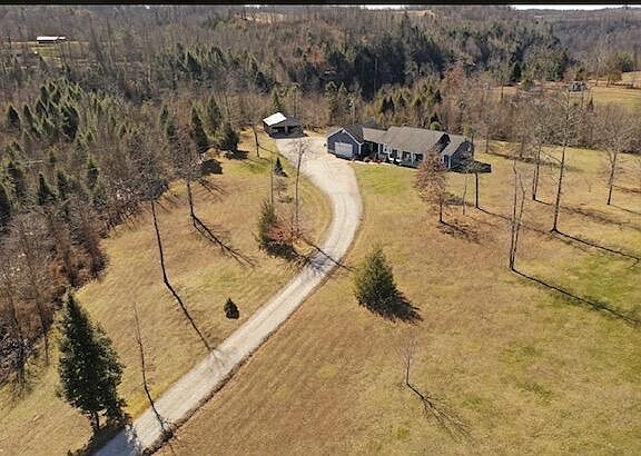 Wow Factor! What doesn't this home have? Make your dreams come true with this 4BR, 3BA vinyl home with amazing garage on 6.2 surveyed acres. Upstairs includes Staying cozy in the living room, with built in bookshelves and stone, gas fireplace. Welcoming & spacious kitchen with custom Adler wood cabinets and connected dining area. Brazilian engineered hardwood flooring, very large master bedroom with two walk-in closets, master bath with shower and dual sinks. Two other bedrooms and bathroom. Utility room walks out to the breezeway to the amazing garage that will make any hobbyist or mechanic, never want to leave. Built for hydraulic lift (does not include) and wired for electric vehicle charging. Walk-out Basement includes: another living room with sink for kitchenette, bedroom, storm shelter and the ''Cave of Man Caves.'' Including home theater with all surround sound and built-in screen. and projector. City water, GeoThermal CH/A, Rest in the summer months by the large deck and 27' above ground pool. Property has another 2 bay metal garage building for vehicles or storage and additional outbuilding. Did I mention Broadband internet for any home business. Make your appointment today