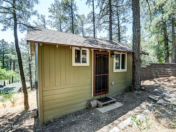 Nestled snugly amidst towering pines just a stone's throw (or a mile, to be exact) south of Prescott's bustling downtown Square, this adorable property boasts not one, but two remodeled cabins that are sure to tickle your fancy. The larger cabin, sporting 1 bedroom and 1 bath, flaunts a delightful deck perfect for soaking in the surroundings--a serene escape from city life. The guest cabin, a cozy efficiency/studio, has undergone a total makeover, leaving no corner untouched. Both cabins feature spanking new kitchens, updated bathrooms, energy-efficient windows to keep nosy squirrels at bay, and flooring that'll have you tap-dancing with joy. 2020 model septic system ensures everything goes where it's supposed to; downhill. Conveniently located for those who can't decide between town...