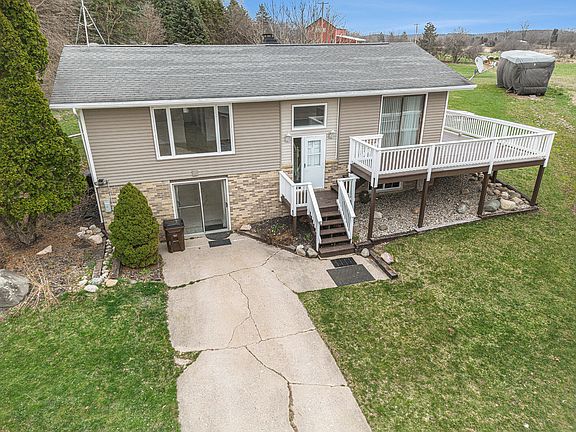 Welcome home to 1051 McCord Rd! Solid three bedroom, 2 bath raised ranch on 2.5 acres in low tax Easton Twp! Lower level features family room with fireplace and recreation room with bar. Upper level features three bedrooms, 2 baths, large living room, laundry, and large kitchen opening to dining area. Dining area has sliders to wrap around deck. Setting is superb with quiet country setting yet not far from 21 for easy commuting. Solid mechanicals with newer forced air furnace and central air. newer hot water heater, updated electrical with plug in for generator. Detached oversized 2 stall garage, 3 sheds, and a huge yard complete this country home package!