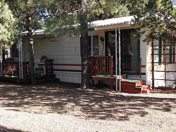 This is an Excellent Opportunity to Live in Show Low Year Round or Part Time. The Elevation is 6300 ft, Surrounded by Trees & Nature with Breathtaking Picturesque Views. Palm Harbor Park Model 12 ft x 35 ft Offers 420 sq ft of Living Space that is Fully Furnished, and Move In Ready. Unit is Located on a Rented Lot in Country Lane RV Park, and is Set in Place w/Skirting Attached. This Lovely 1 Bedroom 1 Bath Includes Living Rm, Kitchen and Dining Rm Combination Area. Has Storm Windows as well as Plenty of Closet and Storage Space with Carpeting and Drapes Throughout. Has Propane Heater, Ceiling Fan and Built in Radio/Tape Deck. Some Walls are Wall Papered, Some are Paneled. Includes a Refrigerator, Built in Microwave, Propane Range/Oven, Broiler Oven, Toaster, Crock Pot, Can Opener, Small Space Heaters and Even a Coffee Maker. Furnishings Include; 2 Recliners, Rocker, Glass Top Dining Table w/Chairs, Full Size Bed, Pots & Pans, Dishes, Bed/Bath Linens and Cleaning Supplies. Outside You will Find 2 Covered Wooden Decks w/Hand Rails. Outdoor Furniture Offers 3 Tables, 5 Chairs, End Tables and 2 Ladders. Comes with 2 Metal Sheds 4x8 and 6x12. Large Front Windows w/Sliding Glass Door and a Rear Entry Door to Bedroom. Best Lot in the Park, Very Quite, Large Lot (100 ft x 44 ft) with 90% Gravel Covered for Extremely Low Maintenance. Park Rental Options are Flexible and Rates are Some of the Lowest in the Region. Park Includes a Club House w/Laundry Facilities, Restrooms and Showers. Weekly Events are Hosted at the Park During Summer Season. Unit is Available for $24,000. Or Best Offer OBO. Serious Inquires CASH ONLY w/NO CARRY. Please Call: Edna (480) 826-3584 or Mike (502)295-3997