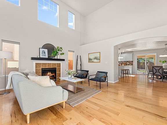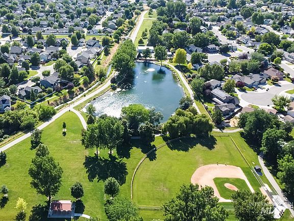 Explore this 4-bedroom, 2.5-bath hidden gem in the desirable area of Meridian. This features vaulted ceilings with remote-controlled window treatments & gas fireplace. Enjoy LVP floors & a new updated kitchen with freshly painted cabinets, epoxy countertops and a gas stove. AC newly repaired! The second living room spans 31 feet, perfect for entertaining with a built-in entertainment center & plenty of natural light. Step outside to a long shaded porch, a waterfall feature, & fruit trees (apple, plum, peach, & cherry). The master bedroom is 21 feet long with an attached master bath featuring dual sinks, ample counter space, and a bathtub. The garage includes built-in storage cabinets. Walk just down the sidewalk to the Ten Mile Pathway, Fuller Park, & community pool. Drive to Albertsons, Dutch Bros, Compass Public Charter School, freeway access, & Scheels Sporting Goods. The house is pre-inspected, extensive repairs completed. Contact the listing agent for a video house tour or in person tour asap!