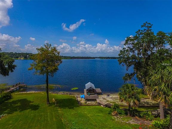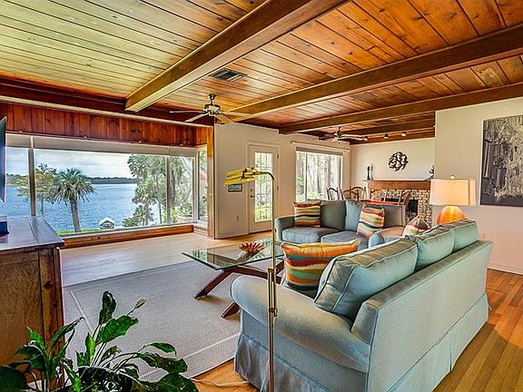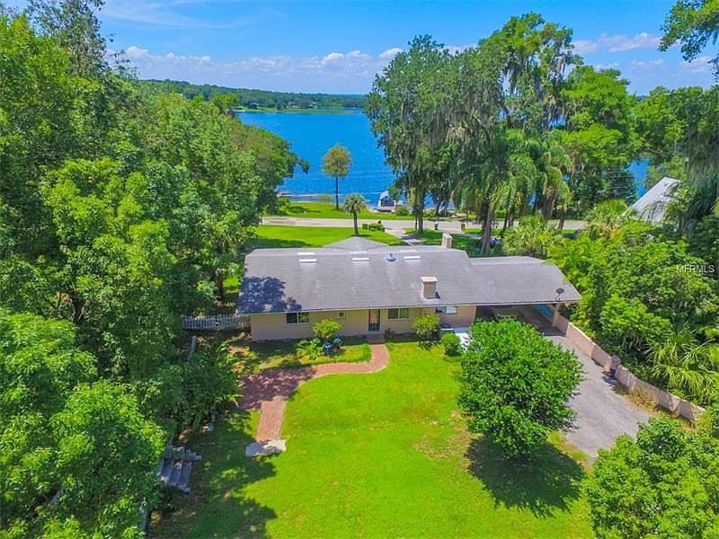 10,000 PRICE REDUCTION!! - LAKE GERTRUDE- LOWEST PRICED LAKEFRONT HOME WITH MILLION DOLLAR VIEW - This beautifully appointed home with accompanying waterfront lot sits high on hill overlooking the pristine shores of Lake Gertrude. The interior of the home features a spacious open floor plan with original built-ins - hardwood floors, hardwood beams and ceilings and wood burning brick fireplace. The exterior offers a secluded fenced back garden with detached potters shed or art studio. New septic in 2015 and new AC in 2011. This Lakeside home is just a short stroll or bike ride to the historical town of Mt. Dora and only a 15min drive to the seaplane town of Tavares. Don't miss the opportunity to view an affordable Lakefront home on one of the most pristine picturesque lakes in Florida.