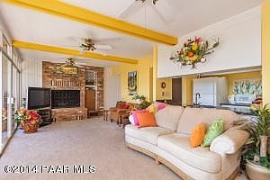Gems are found in small packages & this unique home is just that! An expansive contemporary feel is accentuated with a 32' wall of windows making you feel like you are on top of the trees. The unobstructed views of the forest, hills & sky will take your breath away. Windows are passive solar allowing the warmth of the sun inside in the winter & the shade of the overhang protecting from the intense rays of the summer sun. Enjoy the crackle of a fire in the extra large fireplace but allow the over-sized custom tulip tiles in the kitchen to warm you heart all year long. Take the stairs down to 2 more covered patios, 2 potential bedrooms, the covered car port & storage. Local vegetation makes for low maintenance. Walk to downtown from this excellent location in the pines. Call now.