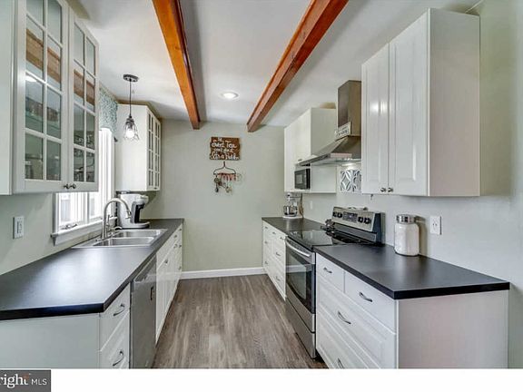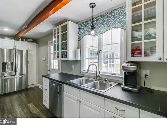 Downtown Living at its finest, this charming cape has all the characteristics you're looking for! Entering the home you will be surprised by the open spacious feeling. The warm honey toned flooring along with the brick fireplace complete with wood mantel makes your large living room great for entertaining. Hardwood floors are carried through the dining room which also includes wainscoting. Modernized kitchen pops with 42 inch cabinets, stainless appliances and exposed beams. First floor is also complete with family room, 1st floor bedroom and a full updated modern bath. Upstairs you will find two large bedrooms, one of which is the main bedroom complete with large walk-in closet and room for a sitting area, wow! Other great features include newer dual zoned heat and air, built-in shed, full unfinished basement, large rear porch, fully fenced in backyard and solar panels. Centrally located in town close to the hospital and all your shopping needs, schedule your tour to see this one today! Hurry, before it's gone!