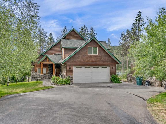 Custom home with 70' of Spokane River frontage. Walk out your backyard and fish or put your kayaks in and take off down the river. The home has a stunning entry with rock arched accents, master suite on main level with full bath & shower/double closets, large family room with vaulted ceiling overlooking backyard with gas fireplace, large dining room area and gourmet kitchen with butcher block island, gas cook top, double ovens and walk in pantry. Upper level is another master suite with its own patio, gas fireplace, built in dressers, two closets, tiled walk in shower and bath and a separate loft area looking out to river. Lower level has another game/family room with wood burning fireplace, built in kitchenette with stove & refrigerator, two over sized bedrooms, full bath, and