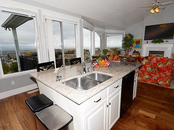 Wow! Here is a dream house! Beautiful inside & out. Great room with gas fireplace, hardwood floors, formal dining room, white kitchen with granite countertops, main floor laundry, big walk-in pantry, & views of the valley & mountains -- spectacular!! 6 beds, 3 full baths, walk-out basement with large living room plus theater room. Oversized 3 car garage with storage galore. Large covered deck on west side to enjoy every season. Ideal location for hiking & biking trails. Call today! Buyer to verify all information.