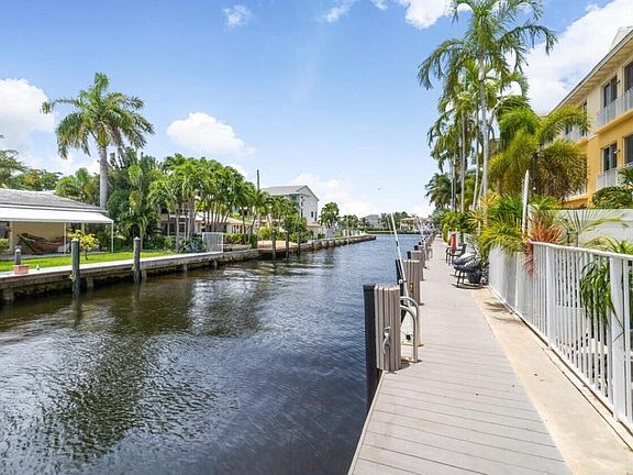 Welcome home to this beautiful deep water canal townhome, minutes from the beach. Rarely available 3 bedroom + den / 4 bath / private pool Waterfront Townhome, blocks from the ocean with a 39' deeded dock. This tri-level townhome, features an elevator, bright light southern exposure & Intracoastal views. Ground level, family entertainment, private pool, & 39' dock right out your back door. Rich features: chisel-edged marble flooring on two floors, upgrades throughout great master with shower and tub, Central Vac. Upgraded kitchen, stainless steal appliances & quality cabinetry. Hurricane impact doors & windows, concrete block construction between residences for additional security & privacy. This is a Boater's dream, No fixed bridges, quick ocean access. One car garage and guest parking.