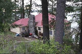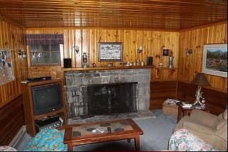 100'ff Diamond Lake waterfront property with 2 br, 1 ba lake cabin. Sandy beach. Sunset view. Boat house included. Dock. County road intersects property. 2 tax ID parcels dividing the property into 2 50' X 300' lots. Half log wood siding. Knotty pine interior. Massive rock fireplace.