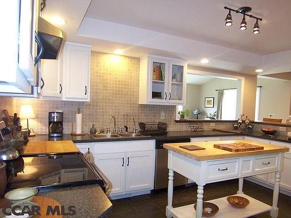 Completely and tastefully renovated ranch-style home away from it all, yet only 10.6 miles to Wegmans. Nestled on 1.65 acres among rolling hills with the sounds of birds and a stream find high quality craftsmanship and selections. New siding, new wiring, new plumbing, new roof! No carpet here; value gorgeous hardwood and ceramic tile flooring throughout the main living areas. Expansive windows and openings bring in abundant light and great views of the outdoors. The kitchen is outfitted with a gorgeous walnut breakfast bar, stainless appliances and tasteful tile backsplash and floor. You'll adore the very spacious master en suite with a wood-burning fireplace romancing the room. Outdoor living spaces include a sizable deck and cozy covered front porch. You'll appreciate the 19x35 out building with workshop and space to store equipment. Also notable: finished walk-out lower level, two-car garage with work bench.