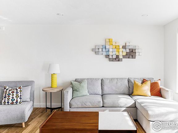 Situated on a spacious corner lot in a prime Longmont location, this beautifully remodeled home offers stylish interiors, abundant natural light, and a detached studio for extra versatility. With thoughtful updates & a layout that supports both comfort & flexibility, this home is designed for easy living & creative use of space. A front porch welcomes you inside, where warm hardwood floors extend through the living room, grounded by a large picture window that fills the space with light. The kitchen features sleek quartz countertops, bar seating & modern flat-front cabinetry accented by a clean white subway tile backsplash. Stainless appliances & streamlined fixtures complete the look. Off the kitchen, a sunroom wrapped with windows serves as a separate dining area or additional living space, with a sliding glass door that leads to the backyard. To the right, the dining space flows into a combined laundry & pantry area, which then leads into a private flex room-ideal for a home office, gym, or creative studio. Down the hall from the living room, you'll find 3 comfortable bedrooms & a remodeled full bathroom, featuring a modern vanity & heated, defogging mirror with adjustable lighting tones. A Nest thermostat & attached one-car garage add convenience. The large backyard is fully fenced and framed by mature trees. A patio off the home invites summer dining, while a second seating area in the corner offers a quiet retreat. Xeriscaping, lush lawn space, and a storage shed add to the appeal. Tucked away in the back, a detached studio provides a flexible, private space for work or play (not counted in total sqftg, approx 127 sqft). Just one block from Loomiller Park and within a few blocks of local schools, this home also offers easy access to Longmont's vibrant Main Street, Sunset Golf Course & Pool & scenic McIntosh Lake. The location offers a lifestyle that's both connected & serene-where neighborhood charm meets everyday convenience.