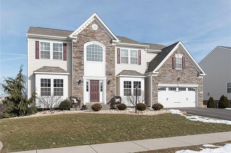 Spectacular 5BR McKinley model w/ Presidential upgrade package! Features include: 5 years young, 9ft ceilings on entire first floor, gas fireplace w/ custom built in shelves, superb wooded lot, grand entry w/ spindle staircase, enormous 32X54 basement with endless possibilities, recessed lights, 42" cabinets w/ crown molding, customized dining room w/ columns, first floor office & formal family room that could be easily converted to 6th & 7th bedroom, hardwood floors, large 10X12 laundry room w/ shelves, cabinets & sink, master bedroom w/ cathedral ceilings & 3 walk in closets, brick to grade on exterior and great location w/ easy access to 376! This home is very large, spacious & shows like a model!