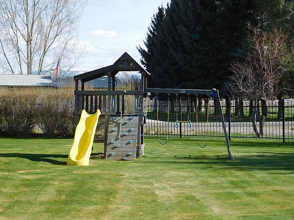 Great family home in a family friendly neighborhood. Open living spaces, sunken living room, great room, bonus room above garage. Tons of storage! Master bedroom open, walk-in closet, jetted tub and laundry chute. Large yard with shed, fire pit, play set and deck. Circular drive. Fruit trees, large garden area, greenhouse or room to build a shop. Near new elementary school. Carpet Allowance. Realtors welcome.