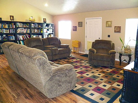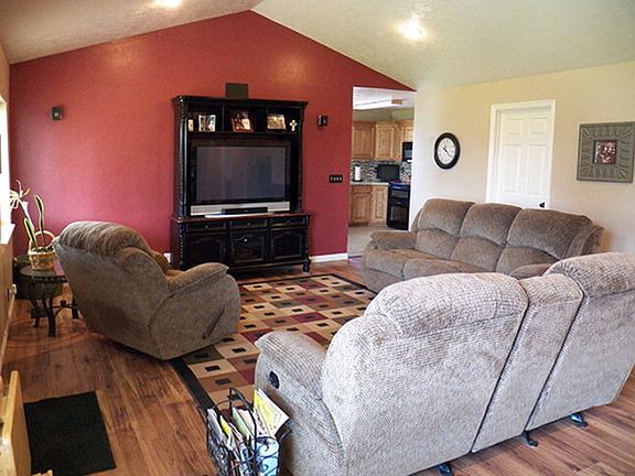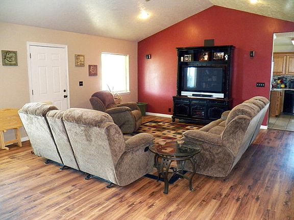 Bring your Livestock to this 3.83 Acre Oasis! Well Kept Home has 3 Bedrooms and 2 Bathrooms!Lots of updates! New roof, siding, central air conditioning, raised gardens, sprinkler system, pressure tank and cement driveway and patio!! Tiled entry flows to the large living room with vaulted ceilings and surround sound. Beautiful hardwood floors throughout. Bright kitchen has tons of cabinets, walk-in pantry and top of the line appliances. Master has walk-in closet and master bathroom. Each bedroom has nice size closets. Fenced backyard has new 10x60 patio which is partially covered. New raised gardens have their own drip system. Fenced pasture is flood irrigated with fantastic water rights! Sellers are putting new flooring in the utility/laundry room. Two car garage is insulated and includes 2 openers! You cant beat this acreage and super clean home! Come take a look!