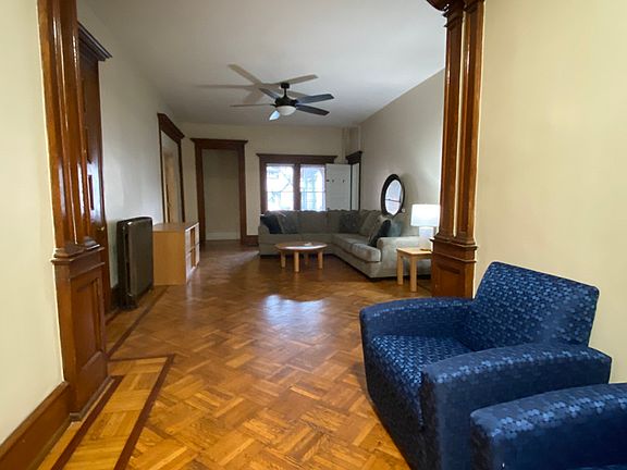 || STUDENT RENTAL || $3,600 PER SEMESTER PER STUDENT || ALL UTILITIES INCLUDED || ANIMAL ALLERGEN FREE || The 1800's never looked so good! Four excessively large bedrooms with new furnishings including a loveseat, full-sized beds, desk, nightstand, and dresser. Three bedrooms have walk-in closets. All hardwood floors are refinished parquet pattern - absolutely stunning! Living room has ample seating for you and your friends, aka study partners. Two full and one 1/2 baths. Free tenant-assigned parking on-site. Free tenant laundry. This building is 100 yards to campus and will wow you!