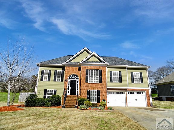 Fabulous Oconee County home and size for the money near Watkinsville with 5 Bedrooms and 3 Full Bathrooms on approximately .75 acre lot. Walk in the front door of this split foyer home to an upstairs with a large Great Room that has a vaulted ceiling and fireplace which is open to the Eat-In Kitchen and the Dining Area. The Kitchen has stainless steel appliances, tile back splash, pantry, and laundry room off of it. The split bedroom plan has two bedrooms sharing a full bath on the right side of the main level and the Master Suite on the left side of the home. The Great Room and Bedrooms on the main have new carpet. The Master Suite features trey ceilings, dual vanity, separate shower and garden tub, water closet, and a walk-in closet. The fully finished basement with smooth finished ceilings and hardwood floors offers more space for the 4th and potentially 5th bedroom that includes a Full Bathroom, an office and a second Family Room. Two car garage. The deck overlooks a large fenced backyard for the kids or pets to play. The roof is 4 years old and the two hvac units are 4 and 16 years old. The home is located within three minutes to downtown Watkinsville, ten minutes to Five Points and UGA, close to Harris Shoals Park and the Oconee County Library. The outstanding Oconee County schools your child can attend are Colham Ferry Elementary, Oconee Middle, and Oconee High School.
