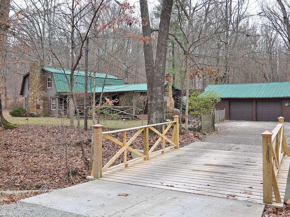 Welcome to your rustic getaway nestled on 2.1 acres' minutes from the 265 Gene Snyder. Cross the rambling creek with a welcoming bridge and enter into a sanctuary. A large (40 foot) front porch greets you, where there is plenty room for entertaining, or relaxing, it is truly most of the year an extension of living space. The original part of the home is a log cabin built in 1939, the addition keeping with the cabin feel is spacious. The great room which large has more charm than you can mention, a large wall of custom built cabinetry provides storage and function. A beautiful wood burning fireplace anchors the home and offers warmth and coziness for most of the year. There are 3 bedrooms in the home, one on the first floor with a private bath. Custom woodwork throughout. The kitchen has a dining area adjacent and hearth room, with a wood burning stove. The kitchen is very functional with a spacious work area and has several new appliances, all appliances stay. Off the kitchen is a large mudroom/pantry. The home features a central home vac for convenience. Finishing off the first floor is an addition full bathroom. Upstairs are 2 bedrooms a large walk-in closet and another full bath. There is plenty of space for outdoor activities and a large outdoor fire pit. The 2 car garage also is attached to a 20 X 20 workshop. All of this and a 1-year home warranty. Schedule your appointment today!