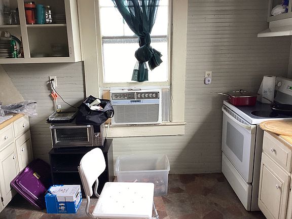 The hardwood floors are original in most of the house, and each room is large and spacious. It has a formal dining room, ceiling fans, and plenty of room to expand. The house has 14' ceilings, and the owner is currently using window units for heating and cooling. The house also has vinyl siding and a shingled roof installed in 2009 approximately. His property taxes are exempt.