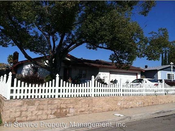Santee Single Family Home in quaint neighborhood. $2495 - Very Quiet , Quaint Santee neighborhood. Spacious front picket fenced yard. Large Family room with hardwood laminate flooring and gas fireplace. Kitchen totally remodeled, enlarged and open to dining area - beautiful warm wood with expansive counter top. Large bedrooms, Ceiling fans throughout, Hall bath w/new tile and jacuzzi style tub Mirrored closet doors in master w/views to private yard, master bath with step in shower and custom glass doors. Extra room with built in storage and laundry area, opens to private covered patio area leading to well maintained private rear yard with fruit trees. Dual paned windows throughout. Washer and dryer and fridge included without warranty. Small pet ok upon approval, additional deposit and renters insurance. Professionally managed by All Service Property Management, Inc. Please email Colleen McDade Colleen@ASAP-Rents.com Apply NOW at www.AllServicePropertyManagement.com (RLNE2756033)
