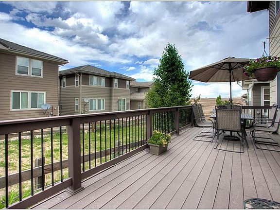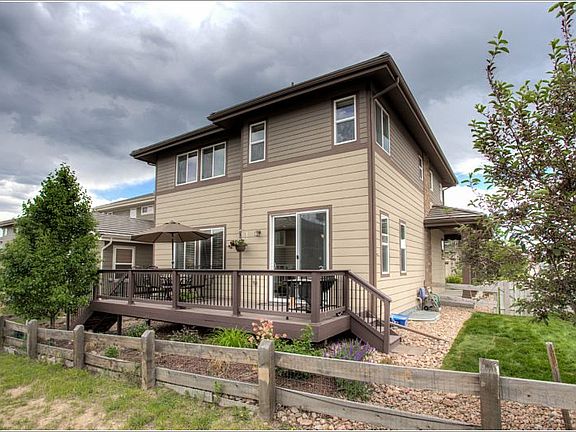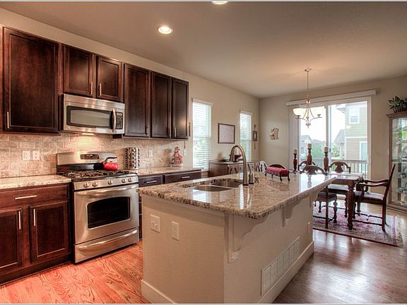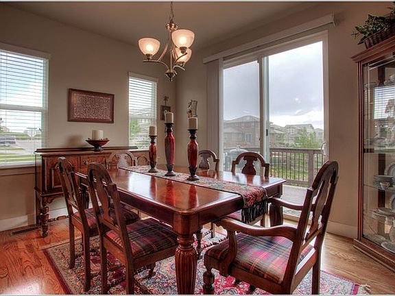 In the heart of Meridian Village, come home to this 3 bed/3 bath home with loft and main floor office. Wow factor in the kitchen! Gorgeous granite with custom tile backsplash, stainless steel appliances, gas stove, “touch to turn on” faucet Wood floors greet you at the entrance and extend through the kitchen and dining area -Fireplace in Family Room – Built In Speakers- 2” blinds throughout Five piece master bath with custom tile- elevated double sinks – double sinks in 2nd bathroom Upstairs laundry with upgraded cabinets Low maintenance Trex deck - Mountain views 9 ft ceilings in basement – rough in plumbing Corner lot in this wonderful pool/park/playground community